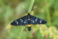 Very rare immigrant (less than 10 previous UK records) from mainland Europe, appearing in southern England. One was in Essex in 2000. Not recorded in Hampshire or on the Isle of Wight to date. Wingspan 37-42 mm. There are several very similar European species, so the specimen should be retained for confirmation of identification. Larva feeds on herbaceous plants such as White Dead-nettle, Red Dead-nettle and Dandelion, no evidence of breeding in the UK.