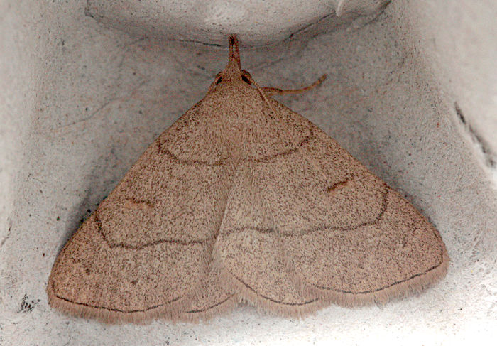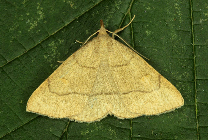 Olive Crescent Trisateles emortualis, in which cross-line are light, not dark as in Clay Fan-foot. Larva feeds on Pedunculate Oak.