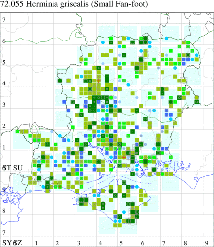 Common in broad-leaved woodland, scrub, hedgerows and gardens throughout the British Isles. Widespread and common in Hampshire and on the Isle of Wight. Wingspan 22-28 mm. Differs from