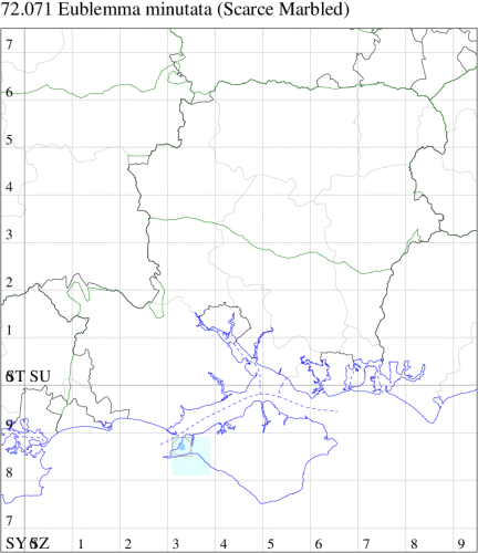 Very rare immigrant (less than 10 previous UK records) from southern Europe, appearing in southern England on just one occasion when one was taken in a cornfield near the cliffs at Freshwater, Isle of Wight, in June 1873. Not recorded from Hampshire to date. Wingspan 16-18 mm. Resembles