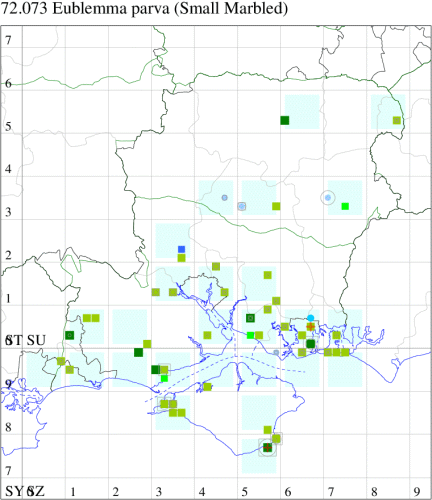Immigrant from southern Europe, appearing in the south, in some years in good numbers, for example, in 1953 when a minimum of 40 were recorded, in 1968 when there were at least 30, and more recently in 2006 and 2009. In Hampshire and on the Isle of Wight benefited from small influxes in 1953 and to a lesser extent in 1968, it has become virtually annual in the 2000s, with 2011 seeing 32 records of 45 individuals across the two counties. Wingspan 16-18 mm. The most likely confusion species are