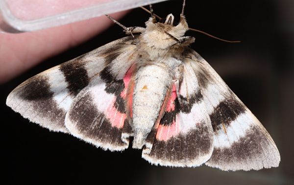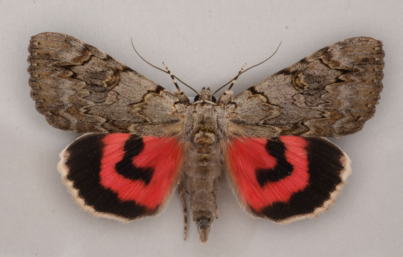 Red Underwing C. nupta, which has the forewing more mottled and fasciae less deeply dentate, hindwing with dark marginal band somewhat narrower and its distal edge more irregular, and