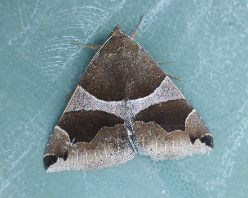 Wingspan 44-48 mm. The most likely confusion species is Geometrician Prodotis stolida has forewing antemedian fascia without central compression and the postmedian fascia doubly curved; hindwing with a clear white spot above termen (MBGBI Vol 10). Observers are reminded that the very similar D. torrida (see Lepiforum) is a potential migrant although not reported from the British Isles to date. On the continent the larva feeds on Bramble and Sallow.