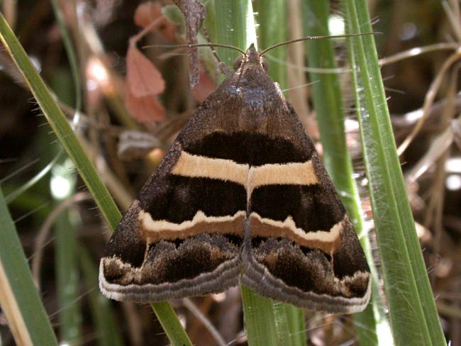 Passenger Dysgonia algira, which see for differences. Larva feeds on Bramble and Oak, no evidence of breeding in the UK.