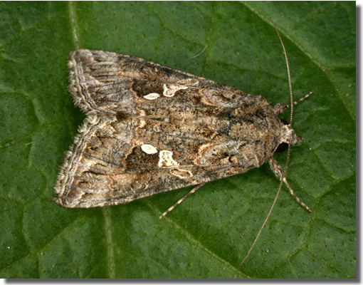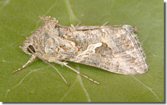 Scarce Silver Y Syngrapha interrogationis, which also occurs as an immigrant in southern counties and which is resident in northern Britain. Larva polyphagous on various herbaceous plants, including Sea Rocket and Mouse-ear Hawkweed, but unable to over-winter in significant numbers.