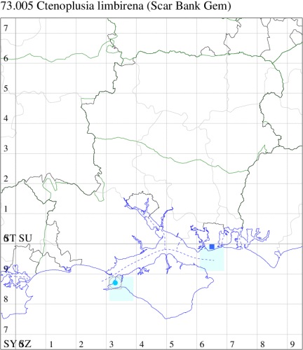Rare immigrant from Canary Islands and North Africa, appearing on 23 occasions up to 2018, from June to October, with the coast of Cornwall and the Scillies across to Dorset seeing the majority of individuals recorded. In Hampshire, one was trapped in Southsea on 10 June 1997, and the Isle of Wight it has turned up twice in Freshwater, in 1960 and 1988. Wingspan 38-46 mm. The most likely confusion species is