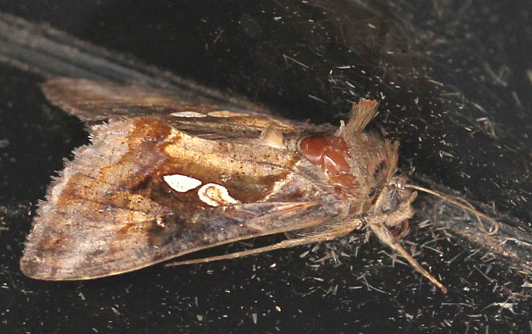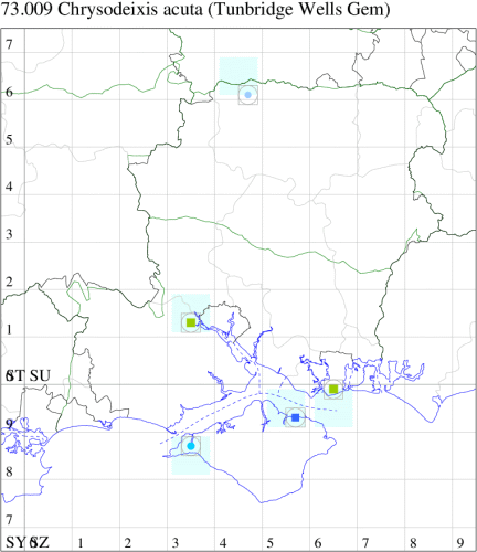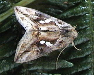 C. acuta is larger, with more pointed forewings, which are largely purplish-brown, with the silver markings in the centre of the forewing larger and fuller. Larva feeds on Tomato and various Leguminosae; no evidence of breeding in the UK.