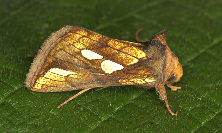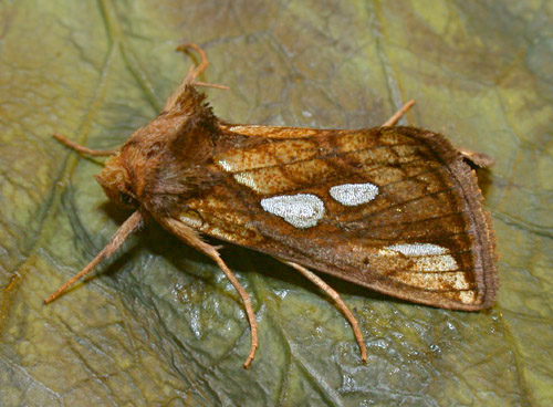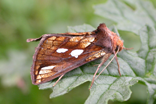 Lempke's Gold Spot P. putnami, is rare in the south of England, and differs in having the more distal of the silver median spots smaller and more rounded, and the subapical silver streak shorter and thicker, but can often only be separated by dissection of the genitalia. Larva feeds on various sedges, including Tufted Sedge and Glaucous Sedge, and other waterside plants.