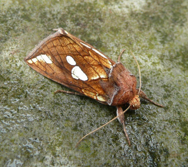 Gold Spot P. festucae, which see for differences. Larva feeds on Wood Small-reed, Purple Small-reed and Yorkshire-fog.