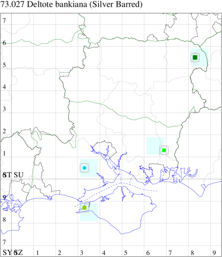 A rare Red Data Book species, this species is a well established but localised resident in the Cambridgeshire fens and at a coastal marsh in south east Kent. Also a rare but regular continental immigrant to the south east and central south of England with, for example, ten records from eight sites in Essex since 1985, at Landguard in Suffolk in 1996 and in Norfolk. In Hampshire there have been threerecords of this attractive moth: the first in a Rothamsted trap in the New Forest in 1985, and the second not until twenty years later, at Lovedean; an intriguing record from the Fleet Pond area in 2023 might hint at the possibility of a resident population, although migration cannot be ruled out. The first for the Isle of Wight was at Totland in June 2017. Wingspan 25-27 mm. Unmistakable. Larva feeds on Purple Moor-grass and Smooth Meadow-grass, over-wintering as a pupa.