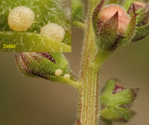 Water Betony S. scrophulariae, from which reliably separable only by reference to the genitalia. Larva feeds on flowers of Dark Mullein, over-wintering as a pupa.