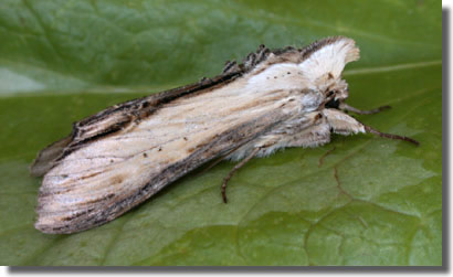 Mullein S. verbasci, which is usually larger and brown-tinged, with a clearly defined discal spot on the underside of the hindwing, whereas Striped Lychnis is grey-tinged and does not hindwing underside dot, and
