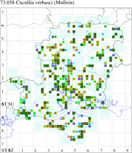Verbascum), in particular Great Mullein, but it also uses Buddleia in gardens, and not infrequently on figwort (