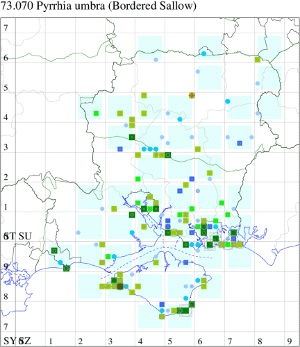 Local on sand-dunes and shingle beaches along the coasts of England, Wales and eastern Scotland, and inland on calcareous grassland in southern England. In Hampshire and on the Isle of Wight now a rare species, more or less confined to coastal localities and a few on the chalk, but occasional wanderers turn up at light away from established populations. Wingspan 34-41 mm. The most likely confusion species is