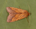 Orange Sallow Xanthia citrago, which has forewing with antemedian and median fasciae almost straight and hindwing without black markings (MBGBI Vol 10). Larva feeds on flowers and seeds of Common Restharrow, Spiny Restharrow, Henbane and Sea Sandwort, over-wintering as a pupa.