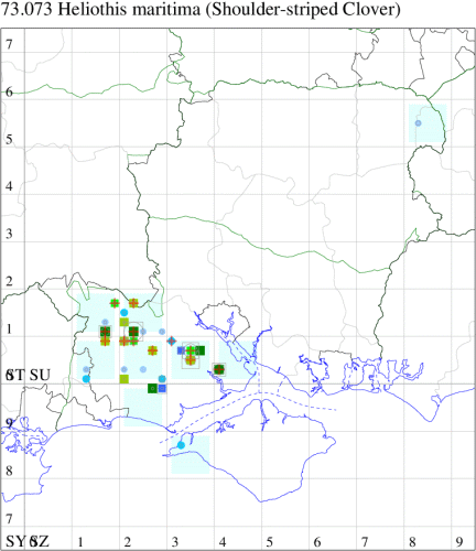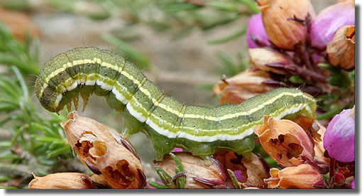 H. maritima. Larva feeds on flowers of Cross-leaved Heath, over-wintering as a pupa.
