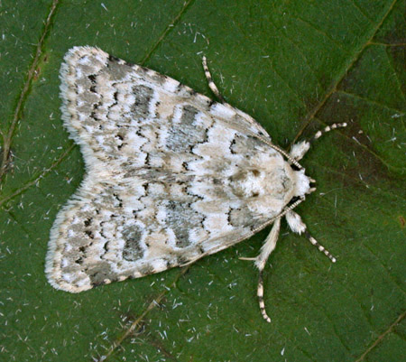 Marbled Green C. muralis, in which antemedian fascia falls short of dorsum. Larva feeds on various lichens, often on walls and tree trunks.