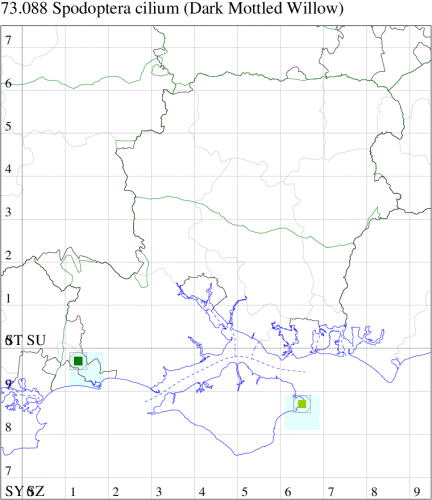 Rare immigrant from grassland in southern Europe, appearing on the south coast of England, first recorded on the Lizard, Cornwall on 29 September 1990, with another at Portland two days later; it is now almost annual, with a total of seven in 2011; records are biased towards the south-west, mainly in October. In our area there have been two records, in Bembridge, Isle of Wight in Oct 2018 and on the mainland, at Hurn in 2022. Wingspan 28-34 mm. Main confusion species is the more common migrant