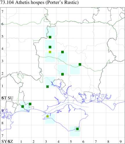An migrant from southern Europe, appearing in southern England. Recorded for the first time in Cornwall on 26 August 1978, subsequently appearing on a number of occasions from Norfolk to Scilly: 2008 saw a peak arrival of 53 records; most frequently recorded from the southern coastal counties of England during the late summer and autumn periods. On the Isle of Wight, was recorded for the first time in August 2006 at Ventnor, with two there in 2007 and two in 2008, plus one at Totland in 2008. The first record for the mainland was rather unusually far inland, on the Leckford Estate on 20 August 2012 (an event repeated in 2023 when one turned up in Cheriton); surprisingly, the first for South Hampshire wasn't until 2024, when four were recorded during a nationwide influx. Wingspan 26-30 mm. A nondescript, easily overlooked species. Larva feeds on herbaceous plants such as Ribwort Plantain and Greater Plantain, no evidence of breeding in the UK.