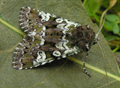 White Spot Hadena albimacula, but it is generally smaller, without a greenish tint and its white marks are less extensive, with a white central block rather than an extra oval. Larva feeds on various grasses, including Tufted Hair-grass and Timothy, no evidence of breeding in the UK.