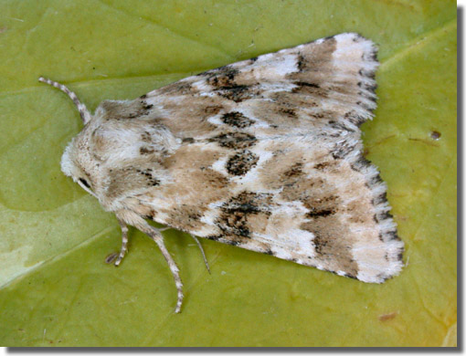 Viper's Bugloss Hadena irregularis, which see. Larva feeds on flowers and seeds of various cereal crops and grasses, including Cock's-foot, False Oat-grass and Common Couch, over-wintering as an egg.