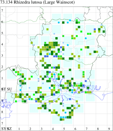 Common in reed-beds throughout much of the British Isles, a species of conservation concern under the UK Biodiversity Action Plan. In Hampshire and on the Isle of Wight widely distributed in the drier parts of reed-beds in all three vice-counties. Wingspan 36-52 mm. The most likely confusion species is