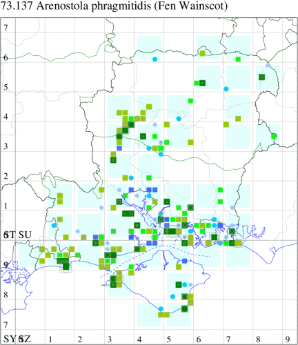 Local in and around reed-beds, from Dorset to Yorkshire, and in Lancashire and Cumbria. Locally distributed in Hampshire, principally on the south-east coast, and inland from the upper Test valley and the lower Avon. Quite scarce on the Isle of Wight, but now annual in small numbers. Wanderers can occur far from suitable habitat. Wingspan 32-36 mm. The smooth creamy appearance of the forewing, darker towards the termen, precludes confusion with any other species (MBGBI Vol 10). Larva feeds on Common Reed.