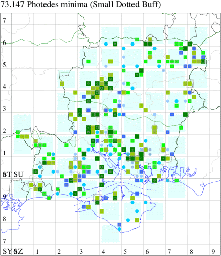 Common in damp grassland, woodland rides, marshes, river-banks and other damp areas throughout the British Isles; reasonably well distributed and common throughout Hampshire and on the Isle of Wight. Wingspan male 25-30 mm, female 20-24 mm. Small size and relatively plain appearance may admit confusion with faded examples of similar sized moths. Larva feeds on Tufted Hair-grass.