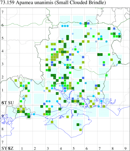 Common in marshes, river-banks, damp woodland and damp grassland throughout most of Britain, but absent from northern Scotland. Widespread and moderately common in Hampshire, but very scarce on the Isle of Wight, where not seen since 1900. Wingspan 30-38 mm. Larva feeds on grasses such as Reed Canary-grass and Wavy Hair-grass.
