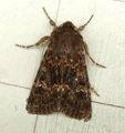 Nationally scarce, on moorland and grassland in parts of Scotland (ssp. assimilis) and on Shetland (ssp. marmorata). Unlikely to be recorded in Hampshire or on the Isle of Wight. Wingspan 38-44 mm. Larva feeds on roots and lower stems of various grasses.