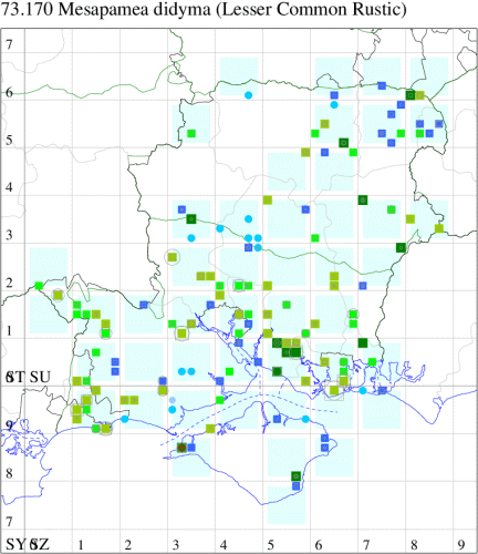 Mesapamea are not specifically identified, the maps do not reflect the full picture. Wingspan 28-34 mm. Highly polymorphic, and impossible to distinguish from