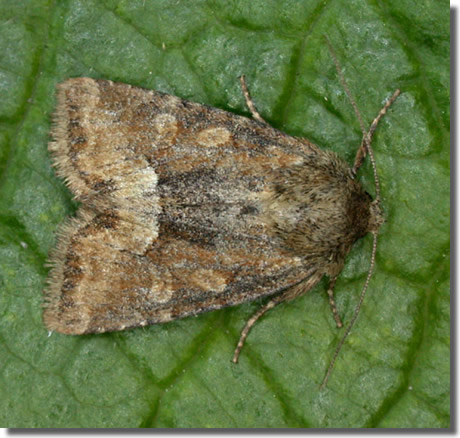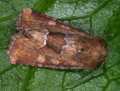 Common in damp grassland, marshes, fens, woodland and gardens throughout much of the British Isles. In Hampshire and on the Isle of Wight widespread and fairly common in all three vice-counties. Wingspan 22-26 mm. Characterised by mottled reddish fuscous forewing, especially on costa and termen, with a median band between ante- and postmedian lines which forms a central bar along the dorsum (MBGBI Vol 10). Larva feeds on various grasses, including Tufted Hair-grass.