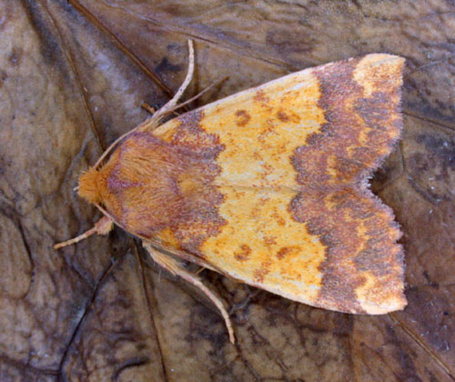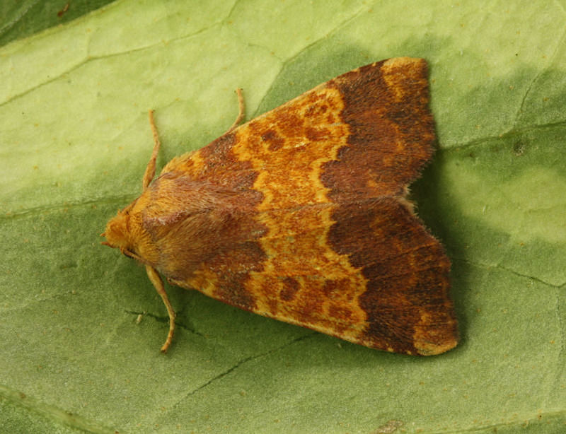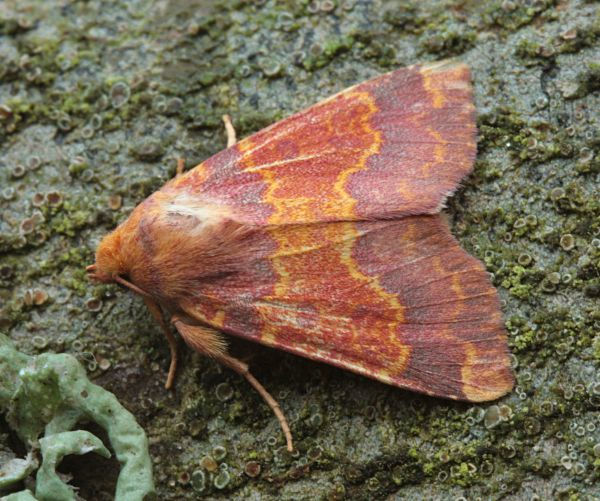 Common in broad-leaved woodland, mature hedgerows, scrubland, downland and gardens throughout much of England. In Hampshire and on the Isle of Wight widespread and often common, mainly but not exclusively on the chalk in beech woodland. Wingspan 33-38 mm. Fairly unmistakable. Larva feeds on Field Maple and Beech, over-wintering as an egg.