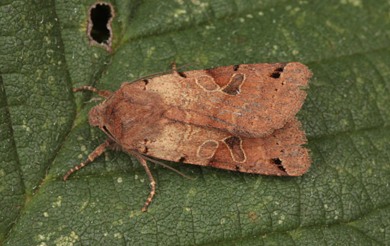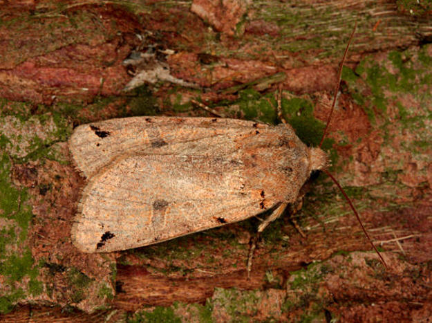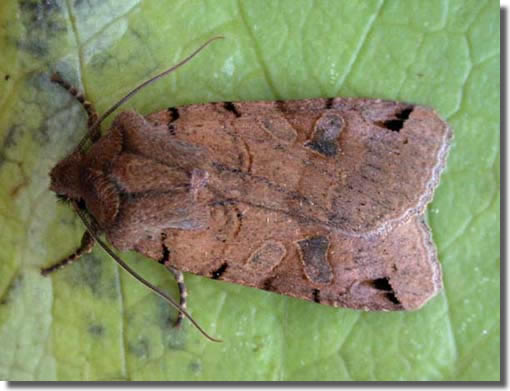 Beaded Chestnut A. lychnidis, which see. Larva feeds on various herbaceous plants, including Meadowsweet, Common Sorrel and Bladder Campion.