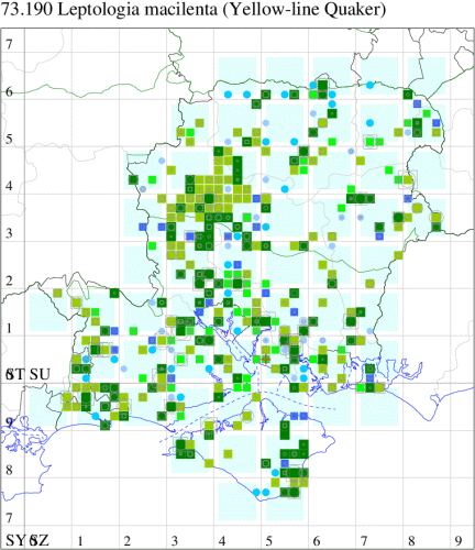 Common in broad-leaved woodland, scrub, heathland, moorland, hedgerows and gardens throughout the British Isles. Widespread and common in Hampshire and on the Isle of Wight. Wingspan 37-40 mm. Straight subterminal fascia distinguishes this species from the otherwise similar
