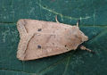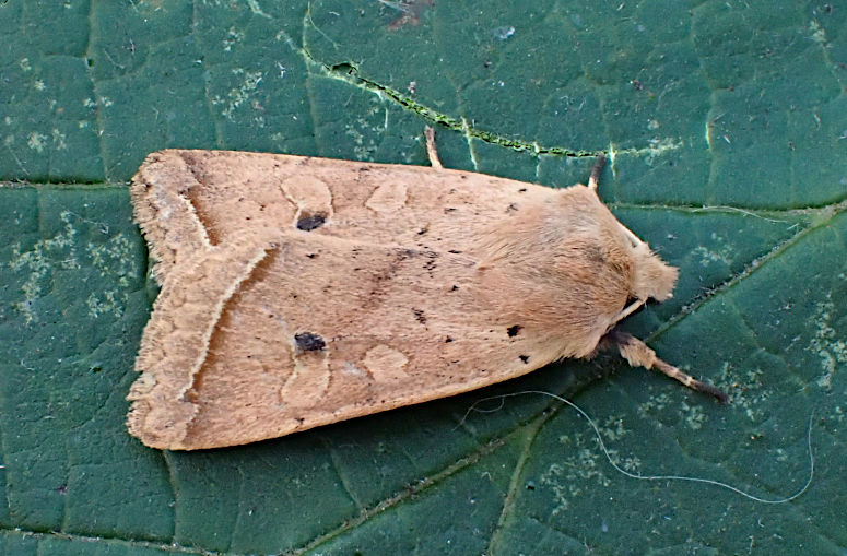 Red-line Quaker A. lota. Larva feeds on various deciduous trees and shrubs, including Sessile and Pedunculate Oak, White and Black Poplar, Beech, Sallow, Hawthorn and Heather, and, when approaching maturity, on various herbaceous plants, over-wintering as an egg.