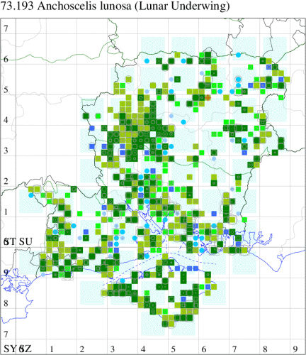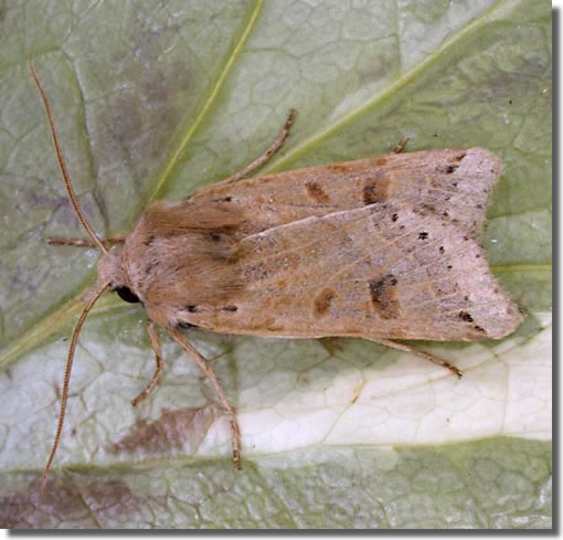 Common in a wide range of habitats, including grassland, parks, downland and gardens throughout the British Isles. In Hampshire and on the Isle of Wight one of the commonest autumn species on downland and grassy heaths, but also found less frequently in deciduous woodland. Wingspan 32-37 mm. Variable in colour and extent of markings, but the pattern of clearly defined whitish veins and subterminal line of black dots makes this an easily recognised noctuid. See also