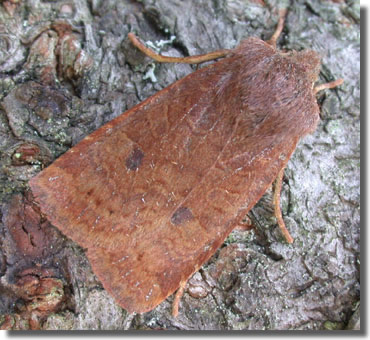 Dark Chestnut C. ligula by the rounded termen and rather blunt apex. Larva feeds on flowers and leaves of various deciduous trees and shrubs, including Pedunculate and Sessile Oak, Elm, Blackthorn, Hawthorn and Downy Birch, and occasionally on herbaceous plants such as Dock.