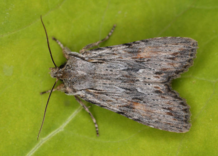 Local in broad-leaved woodland and parks throughout much of England and Wales. In Hampshire and on the Isle of Wight occurs at low density, often seen in spring after emerging from hibernation, either at light or sallow bloom. Wingspan 40-46 mm. The main confusion species is