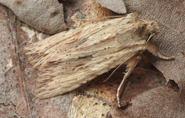 Tawny Pinion L. semibrunnea, but paler and without heavy apical streaking. Larva feeds on various trees and shrubs, including Oak, Sallow, Birch, Apple, Horse-chestnut, Bramble and White Poplar.