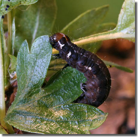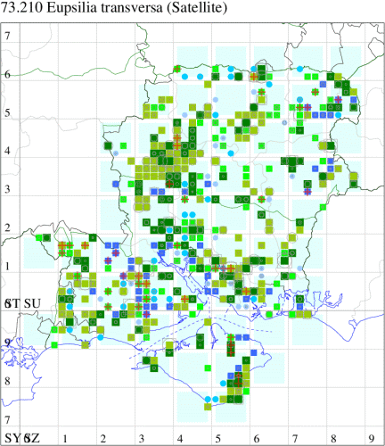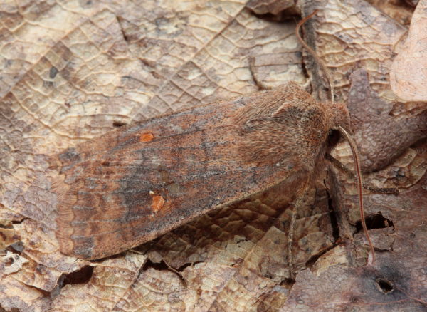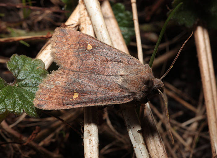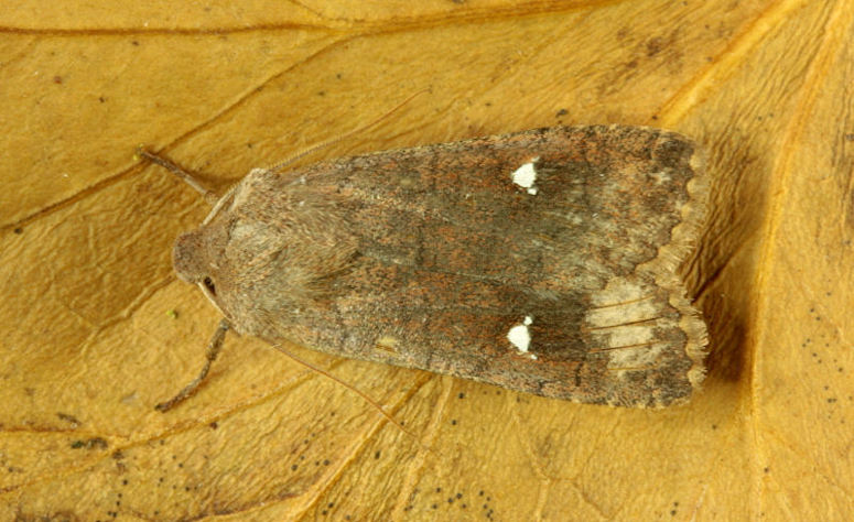 Common in broad-leaved woodland, scrub, parks, gardens and moorland throughout the British Isles. Widespread and common in Hampshire and on the Isle of Wight. Wingspan 40-46 mm. Diagnostic field character is the two small satellite dots close to the reniform stigmata. Larva feeds on the foliage of broad-leaved trees and shrubs, and, as it approaches maturity, on various insects, including aphids and the larvae of other moth species.