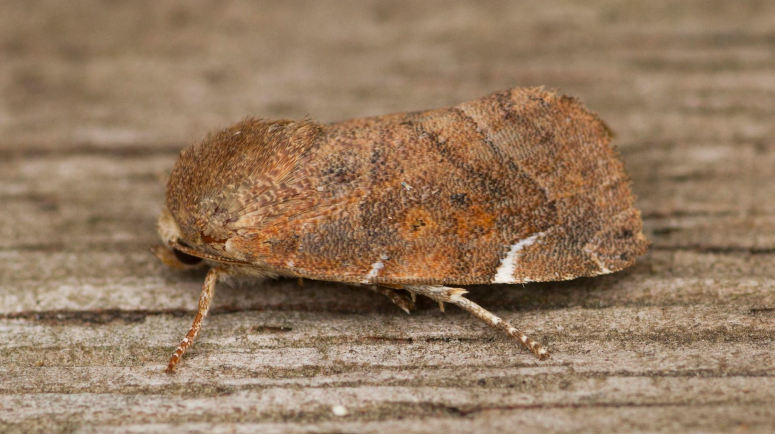 Lunar-spotted Pinion C. pyralina, which see for differences. Larva feeds on English Elm, Small-leaved Elm and Wych Elm, over-wintering as an egg.