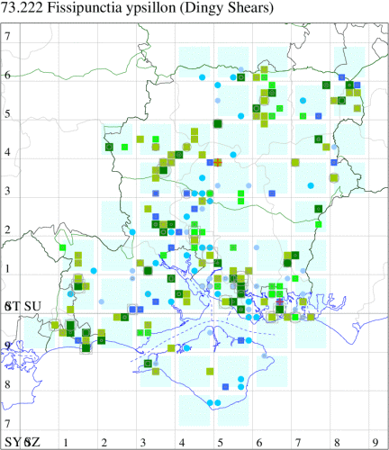 Local in damp woodland, marshes and fens throughout much of England and Wales. In Hampshire and on the Isle of Wight scattered through the three vice-counties, mainly along the river valleys. Wingspan 32-42 mm. Characterised by the pale, sinuous subterminal line, often edged basally by two or more moderately distinct, dark wedge-shaped spots (MBGBI Vol 10). Larva feeds on catkins and leaves of Eared Willow, Grey Willow, Goat Willow, Sallow, Black Poplar and White Poplar, over-wintering as an egg.