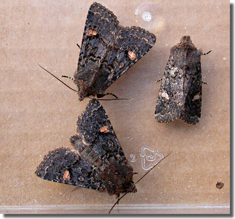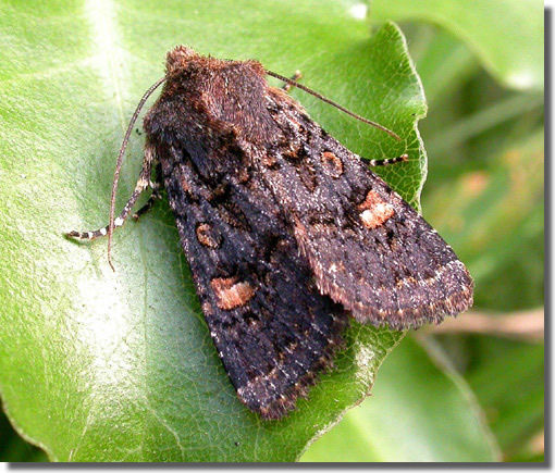 Lesser Common Rustic Mesapamea didyma, but Oak Rustic usually has orange (occasionally white) reniform stigmata and flies very late in the season.