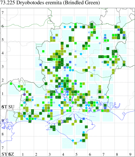 Common wherever there are oak trees, in broad-leaved woodland, parks and gardens throughout the British Isles. Widespread and reasonably common in Hampshire and on the Isle of Wight. Wingspan 32-39 mm. A regular visitor to light traps in autumn, usually in small numbers. Larva feeds on buds and leaves of Pedunculate and Sessile Oak.