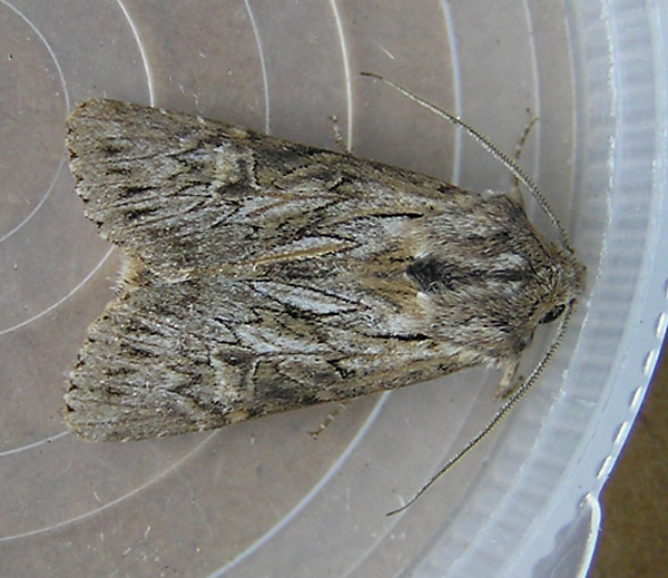 Deep-brown Dart A. lutulenta, which flies at the same time, sometimes on the same ground, but in