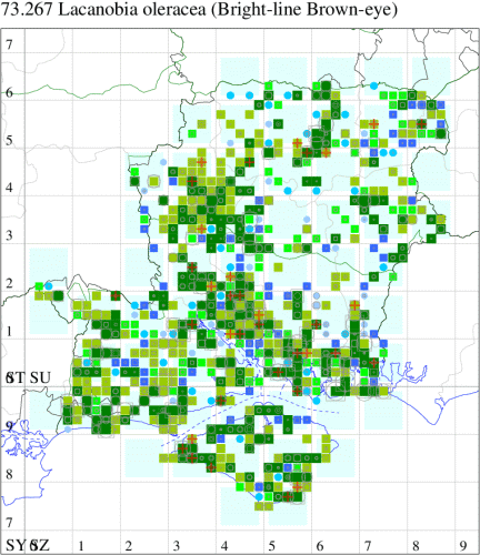 Dog's Tooth Lacanobia suasa, which is duller brown and has a characteristic central tooth-mark on forewing, even in the darkest forms it is usually just possible to see the subterminal line and the short, black basal streak (MBGBI Vol 9). Larva polyphagous, feeding mainly on herbaceous plants, but with an apparent natural preference for orache and goosefoot, also on Stinging Nettle, Fat-hen, Broad-leaved Willowherb, Rosebay Willowherb, St John's-wort, Traveller's-joy, Black-bindweed, Tamarisk, English Elm, Hazel, Hop and Reed Sweet-grass, over-wintering as a pupa.