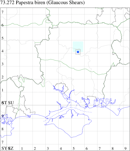 ochrea are often very similar to Glaucous Shears, but can usually be separated by their very round, whitish or pale ochreous orbicular stigma, with a quadrate ochreous mark below (MBGBI Vol 9). Larva feeds on Bog-myrtle, Meadowsweet, Creeping Willow, Bilberry and Heather, over-wintering as a pupa.