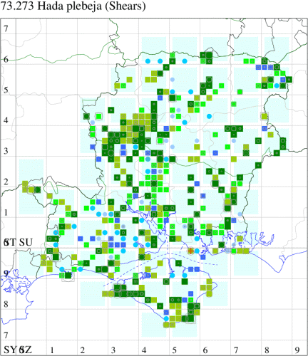 Common on heathland, sand-dunes, downland and open woodland throughout the British Isles. Widespread and common in Hampshire and on the Isle of Wight. Wingspan 28-38 mm. The characteristic white marks adjacent to the orbicular stigma and bordered with black resemble the points of an open pair of shears. Larva feeds on various herbaceous plants, including Smooth Hawk's-beard, Mouse-ear Hawkweed and Lucerne, over-wintering as a pupa.