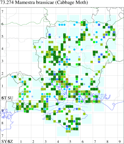 Common in gardens, allotments, open woodland and a wide range of other habitats throughout the British Isles. In Hampshire and on the Isle of Wight there is no real sign of any decline in recent years, still widespread and common. Wingspan 34-50 mm. Distinctive white edge to reniform stigma; has been confused with